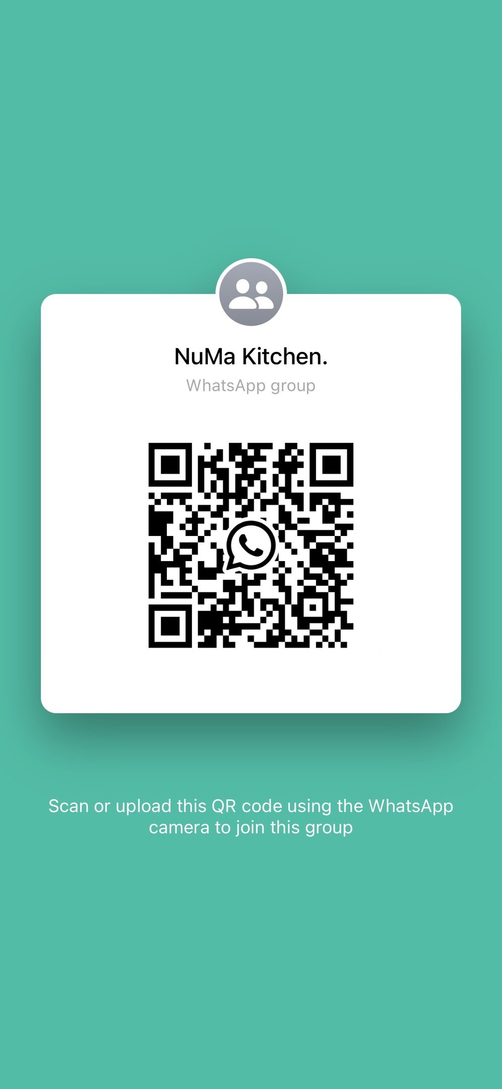 Join the NuMa Kitchen's WhatsApp group. Scan the QR code