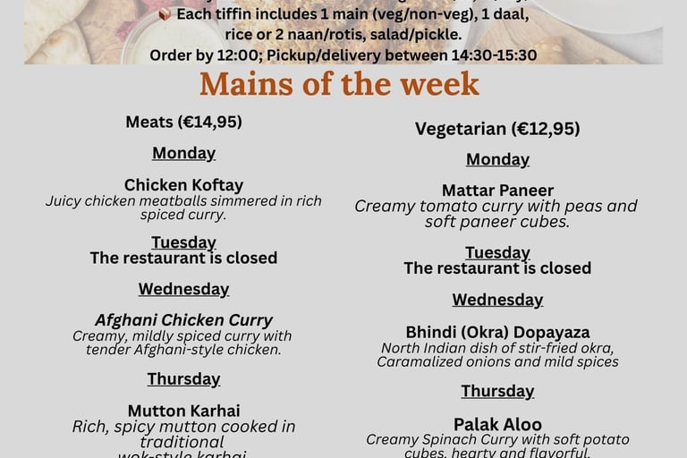 Fresh South Asian meals delivered weekly on Mondays